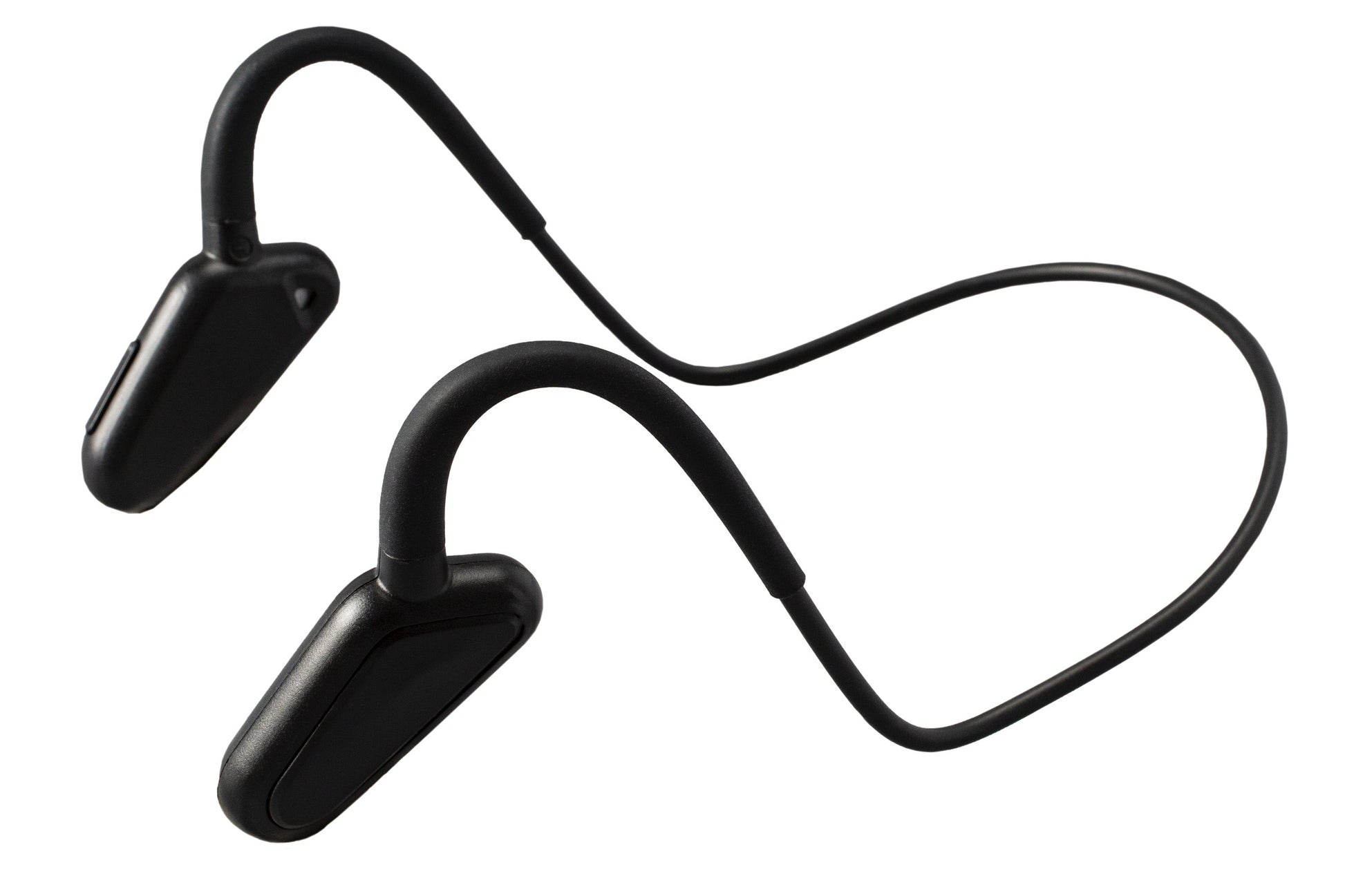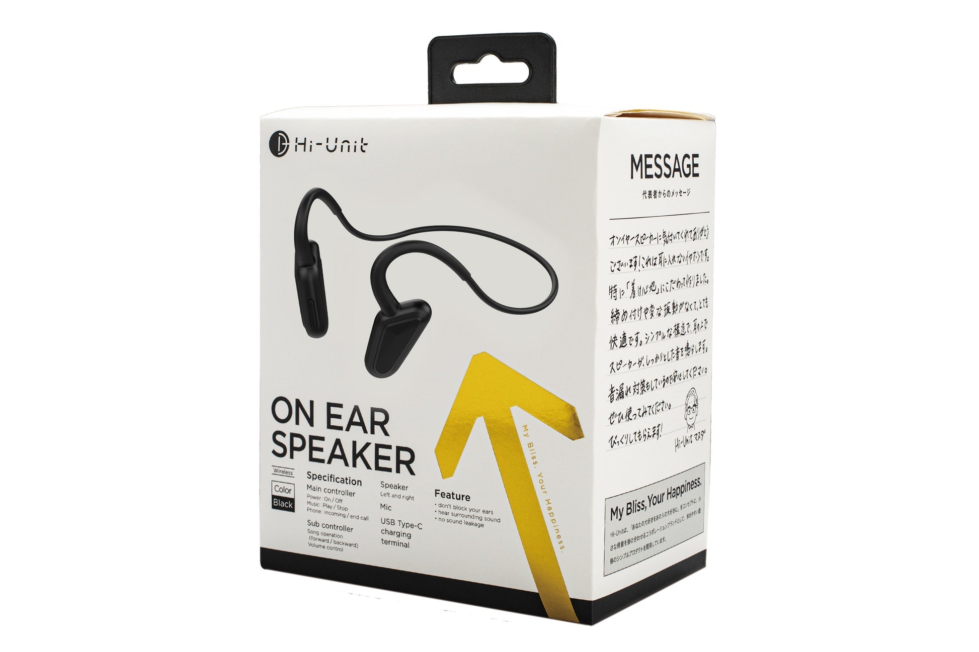 カナル型イヤホンのように耳に突っ込んで装着するでもなく、振動がある骨伝導でもなく、耳の上にスピーカーを配置する構造です。